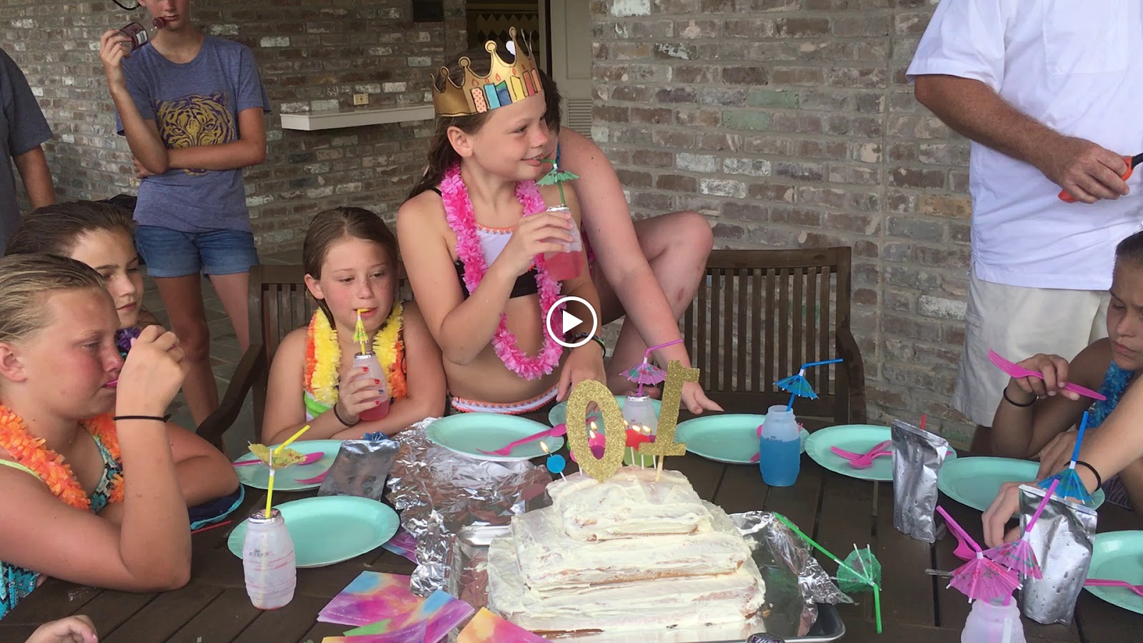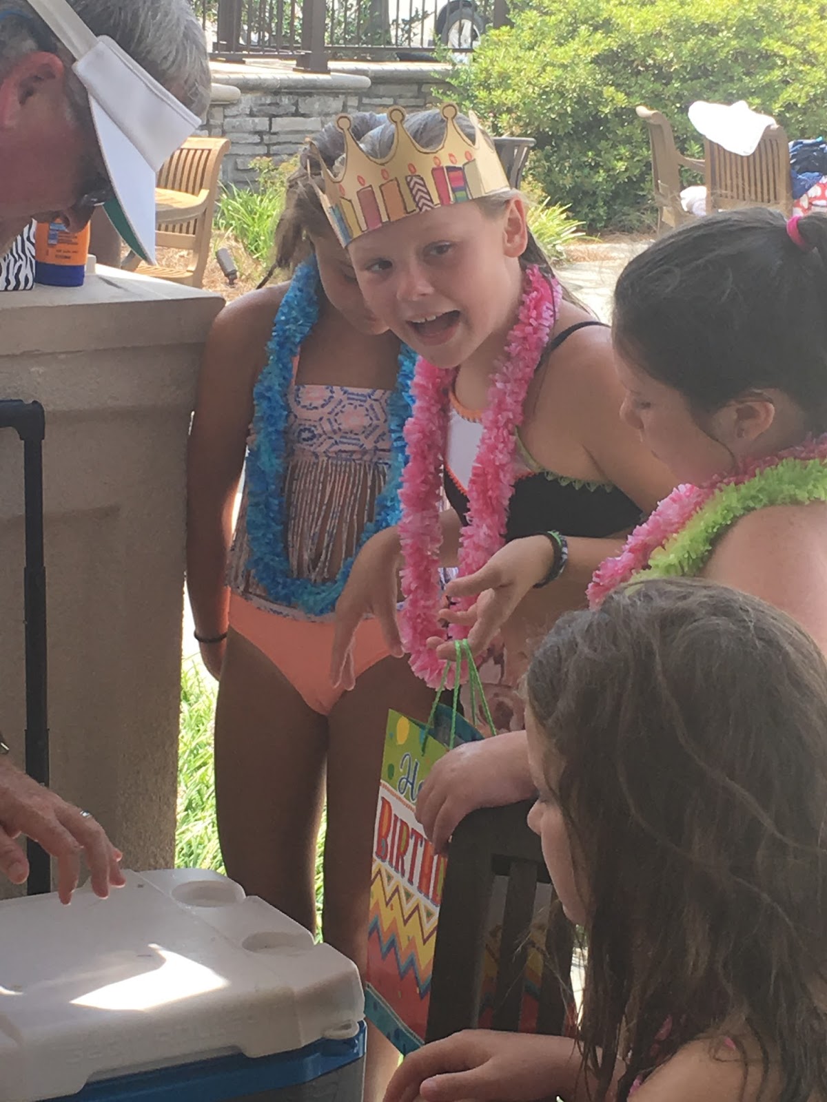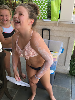 Dad sitting in the shade. Probably wondering how many more of these girl parties he'll have to attend heretofore. Well, I'll tell ya... It dawned on my recently that I probably have another 6 0r 7 summers with my girls. At least only that many more where they'll be under my roof, wanting to take vacations with mom and dad, and letting us throw them annual birthday parties. For that reason, I have really made it a point in the last two summers to spend as much time as I possibly can with my girlies. I recall a similar summer 12 years ago when we had a limited amount of time to spend with a little boy, and we came to the beach twice and DisneyWorld twice, and I have never regretted the sacrifices made to see to it that that happened. I know I'll never regret the sacrifices made now for my baby girls neither. That's really what life is about!All in all we had a very successful tenth birthday party! I was happy there was such a great showing from her friends. I had a glimpse into what the boy/ girl thing might look like in a few years as they all go to junior high and high school. (I also have #futuristic in my top five strengths, so it is natural for me to visualize the future as though it has already occurred.)